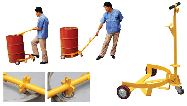 ● 手柄用做杠桿,支起油桶,推入小車即可移動油桶